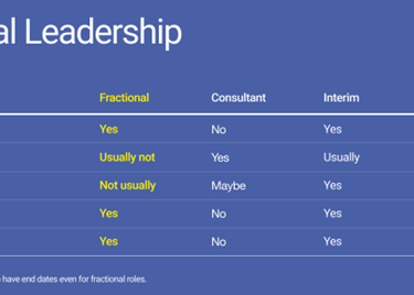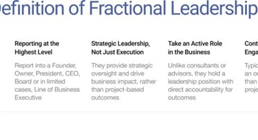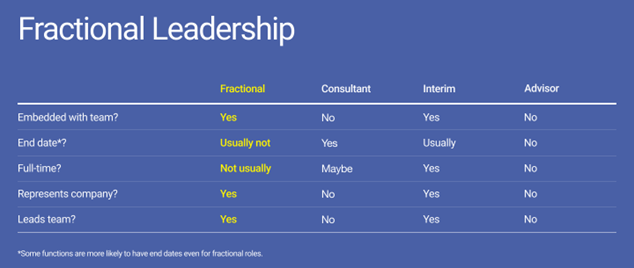A fractional is a part-time fully embedded leader. The only difference between a fractional, and their