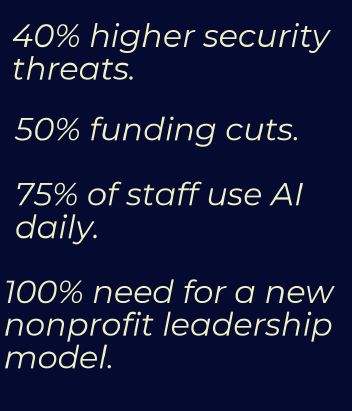 Today's nonprofits face an unprecedented perfect storm: funding cuts, security threats 40% higher than other sectors, and rapid technological change including AI.